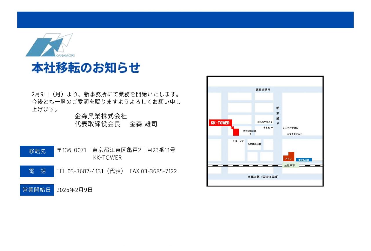 下記のとおり本社事務所を移転いたしましたので、お知らせいたします。